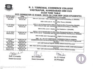 REGULAR EXAM TIME-TABLE FOR MID SEM- II: 2025-26